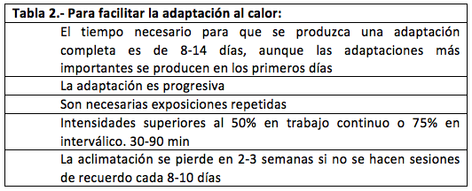 Como vemos, ante una competición en un ambiente caluroso es recomendable, además de aprender a hidratarse de forma adecuada, el realizar un periodo de aclimatación previo para atenuar la pérdida de rendimiento físico y mental.